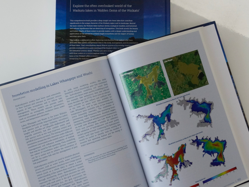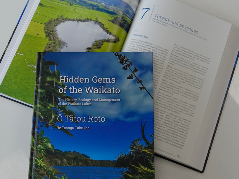 It’s World Lake Day on 27 August 2025, and at EOS Ecology we love lakes, and have been producing a few outputs about them recently! We’re really proud to share that our Senior Graphic Designer, Bronwyn Gay, has spent the last few years working with Natasha Grainger, Deniz Özkundakci and Tracie Dean-Speirs on the design and layout of their Hidden Gems of the Waikato book. They’re the editors of this passion project, which began during the COVID lockdown, and evolved into a substantial publication with over 80 contributing authors. It’s packed with scientific, local, and cultural insights about the Waikato Lakes, and the design needed to weave these varying styles of storytelling together visually. The thoughtful design helps showcase these stories about the region’s unique freshwater ecosystems. If you haven’t got your own copy yet, then head to The Best Little Book Store to get one while you can!