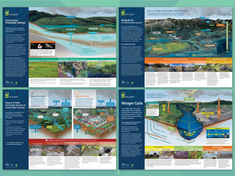 As part of our wider Focus Catchment Map Series document development we produced four other infographics covering some of the key processes and challenges that underpin freshwater health across Aotearoa: